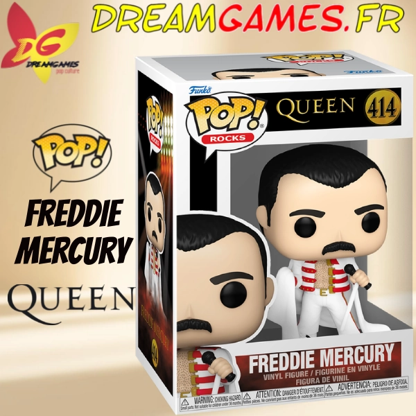 - 📦 Inclus : 1x Figurine Funko Pop! Freddie Mercury #414 dans sa boîte-fenêtre.